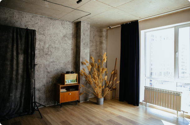 Левый зал (интерьерный с циклорамой) и правый минималистичный зал в стиле loft