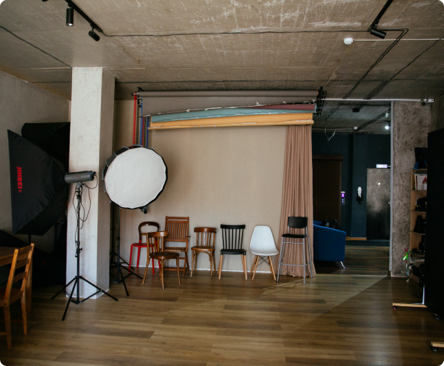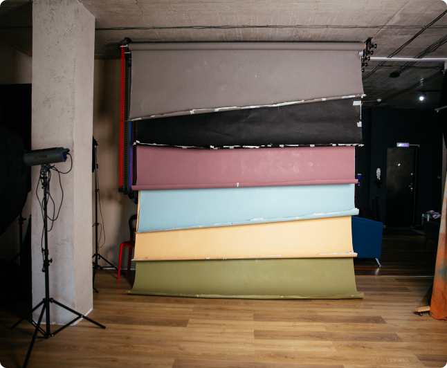 + белоснежная циклорама, которую мы ежемесячно обновляем (со слов наших клиентов, у нас лучшая циклорама в городе).